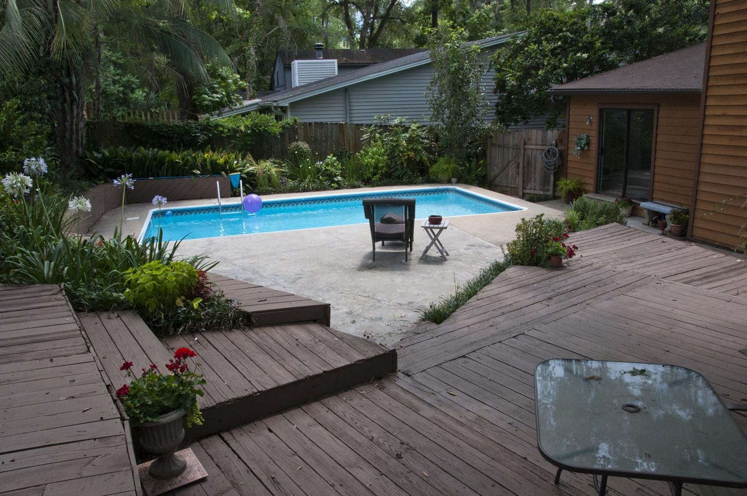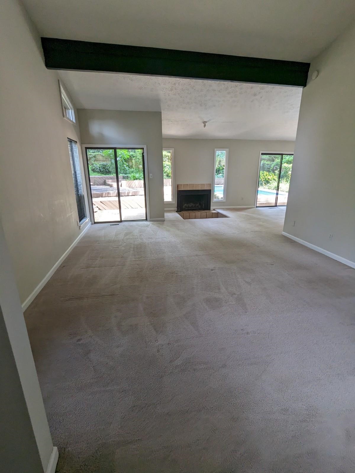 Beautiful Home with Pool & Luxe Master Suite! Spacious home with natural light, high vaulted ceilings, a wood-burning fireplace, and an open living plan. Enjoy a dramatic terraced deck perfect for entertaining and a private swimming pool that includes free weekly cleaning. The master suite features its own private deck, jacuzzi tub under a skylight, a huge walk-in closet, and full mirrors over twin vanities. An additional private off-kitchen deck is ideal for a morning coffee and offers even more space to relax. The house features a two-car garage, fresh paint, and new carpet throughout. A rare rental that delivers comfort, privacy, and resort-style amenities. Animals 20Lbs and under are considered with a non-refundable animal fee.